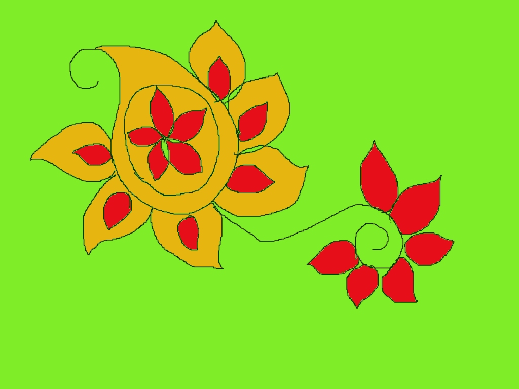 - Floral flow & connection: The curved vine linking the big flower and the small one gives a graceful, traditional alpona feel.