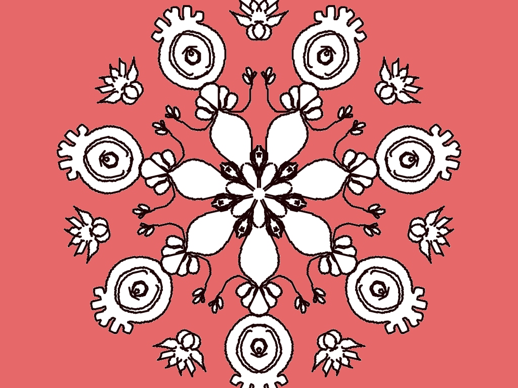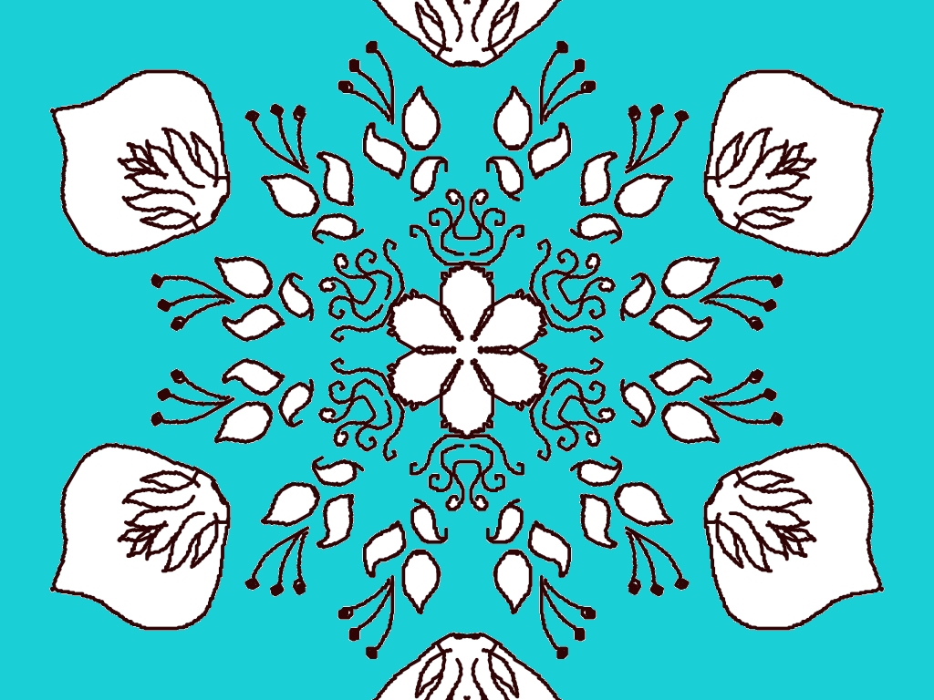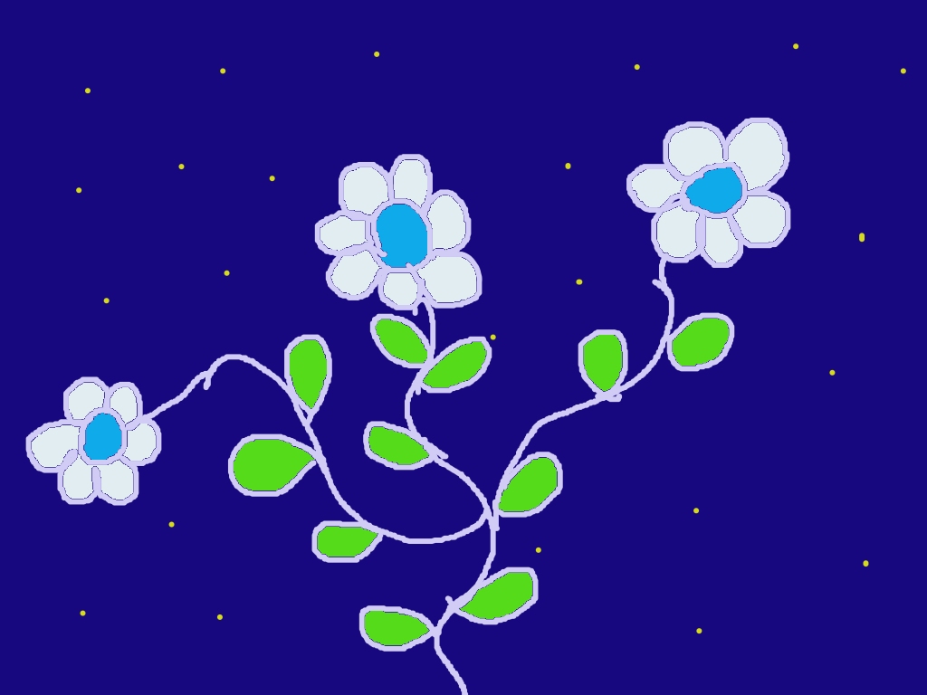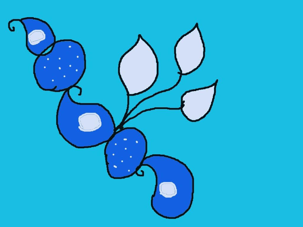 I really like how you used blue shades for the petals—it gives a calm and elegant feeling, almost like a cool floral pattern. The curvy vine structure flows nicely, and the small dots add a decorative touch.