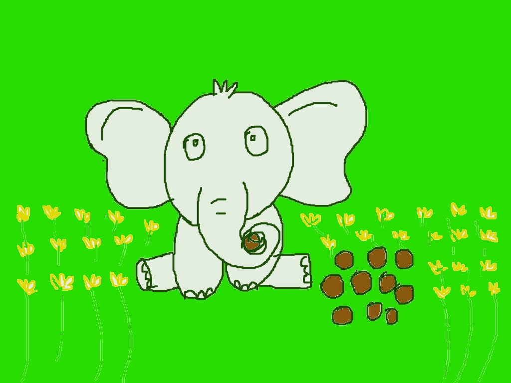 • Ground line: Draw a soft brown or darker green base under the elephant so it looks like it’s sitting on the ground.