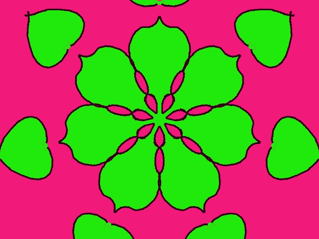 The image shows a bright and cheerful butterfly drawn in a cute, hand-sketched style. The butterfly has vibrant pink wings outlined in black, with playful looping patterns inside each wing giving it a lively, decorative look. The body is colored in a contrasting green, making it stand out beautifully against the pink wings. Two curved antennae rise from the head, each ending in a yellow oval tip, adding a charming touch of detail. The overall style feels joyful, simple, and expressive—like a colorful digital doodle full of energy and creativity.If you want, I can also suggest improvements, create a caption, or turn this into a rangoli description!